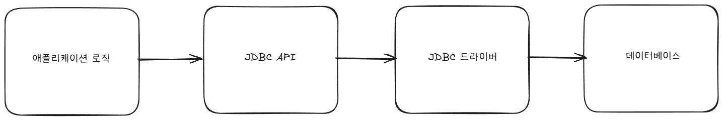 애플리케이션은 직접 데이터베이스와 통신하지 않고, JDBC API를 통해 요청을 전달하는데 이 요청은 각 데이터베이스 벤더에서 제공하는 JDBC 드라이버로 전달되며, 드라이버가 실제 데이터베이스와의 연결, SQL 전송, 결과 수신을