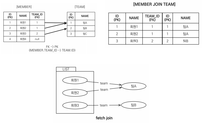 Fetch Join은 연관된 엔티티를 한 번의 쿼리로 함께 조회하여N+1문제를 줄이고 조회 성능을 개선하기 위한