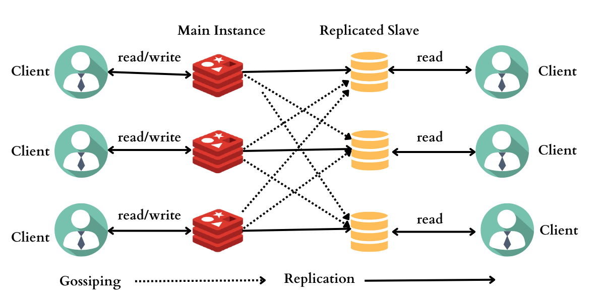 마스터-슬레이브 모델을 사용하여 데이터를 여러 Redis 노드로 복사하는 프로세스인데 이를 통해 데이터의 내구성을 향상하고, 읽기 쿼리의 성능을 높이며, 시스템의 가용성을 높일 수 있습니다.