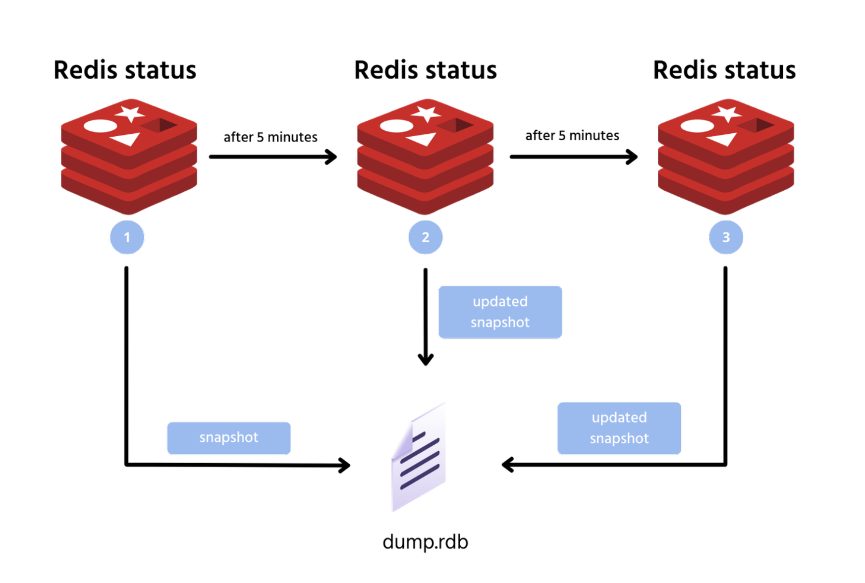 설정한 시간 간격에 따라 데이터의 스냅샷을 일정한 시점에 디스크에 저장하는데 이렇게 하면 빠른 백업이 가능하며