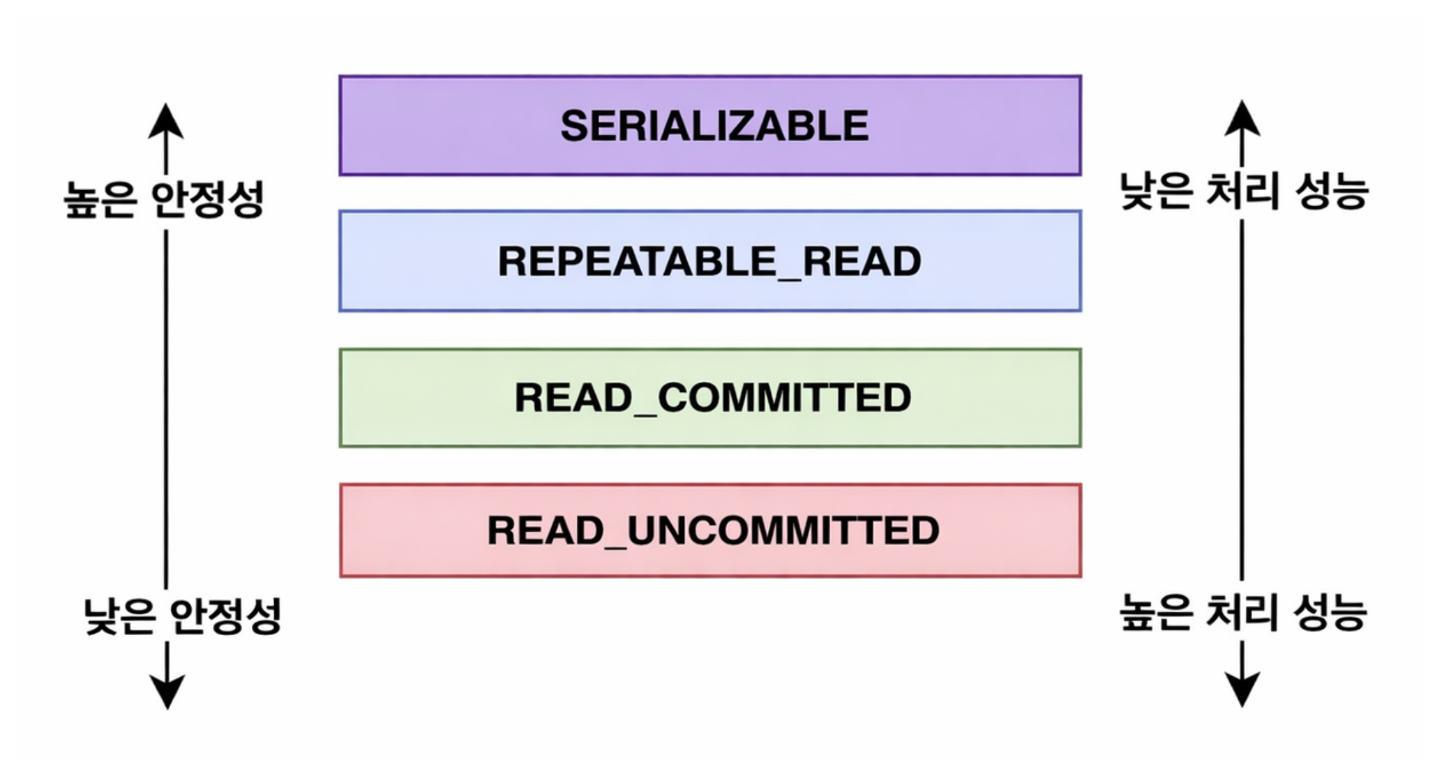 정하는 규칙인데 격리 수준이 낮으면 성능은 좋지만 데이터가 흔들리고, 높으면 정합성은 좋아지지만 락 경합 / 대기가